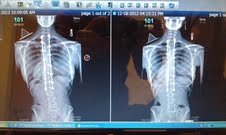 Lower Lumbar of the spine starting to curve to the left. This was only another challenge to defeat… I thought to myself. Doctor Klatt mentioned that the back is only being that way because the back is only trying to just find itself again. Doctor Klatt agreed to have me finally start therapy. Therapy will help strengthen my back muscles and stop the other muscles from overcompensating and straining the lower back from bending as you can see.
