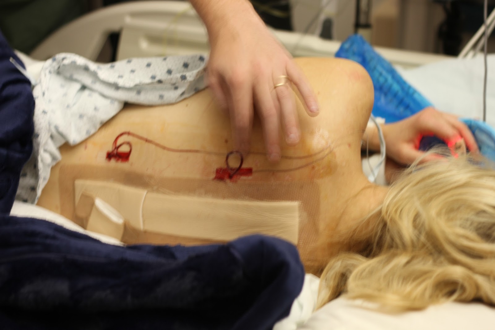 Not to bad eh!!! The two red things on my back were the epidurals.