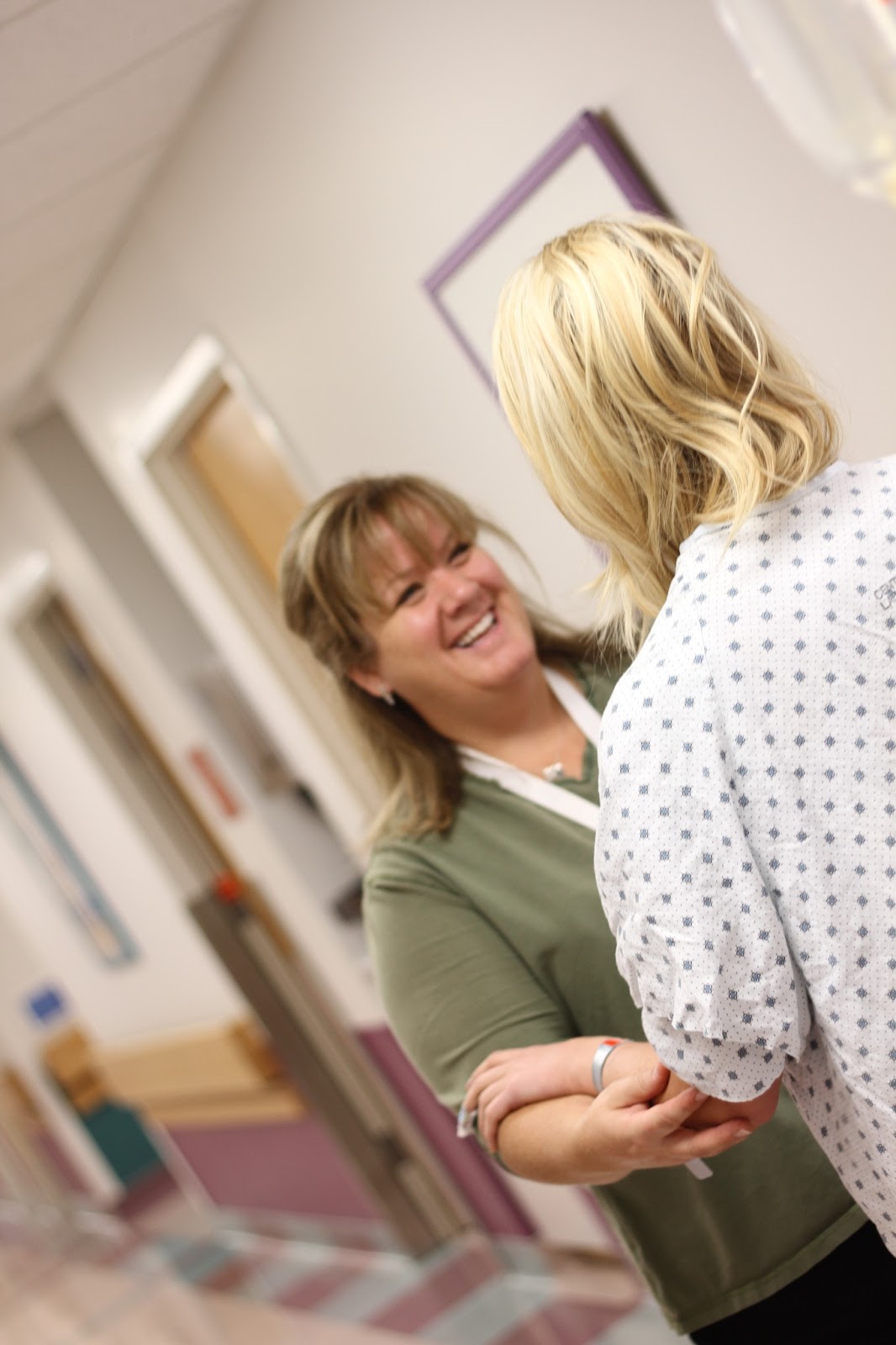 This was when my therapist came a walked me down the hall. I felt like I was learning how to dance again with two left feet. We kept joking as we walked to distract me from the pain I was feeling with each step. I’d have to say she was the best escort 🙂